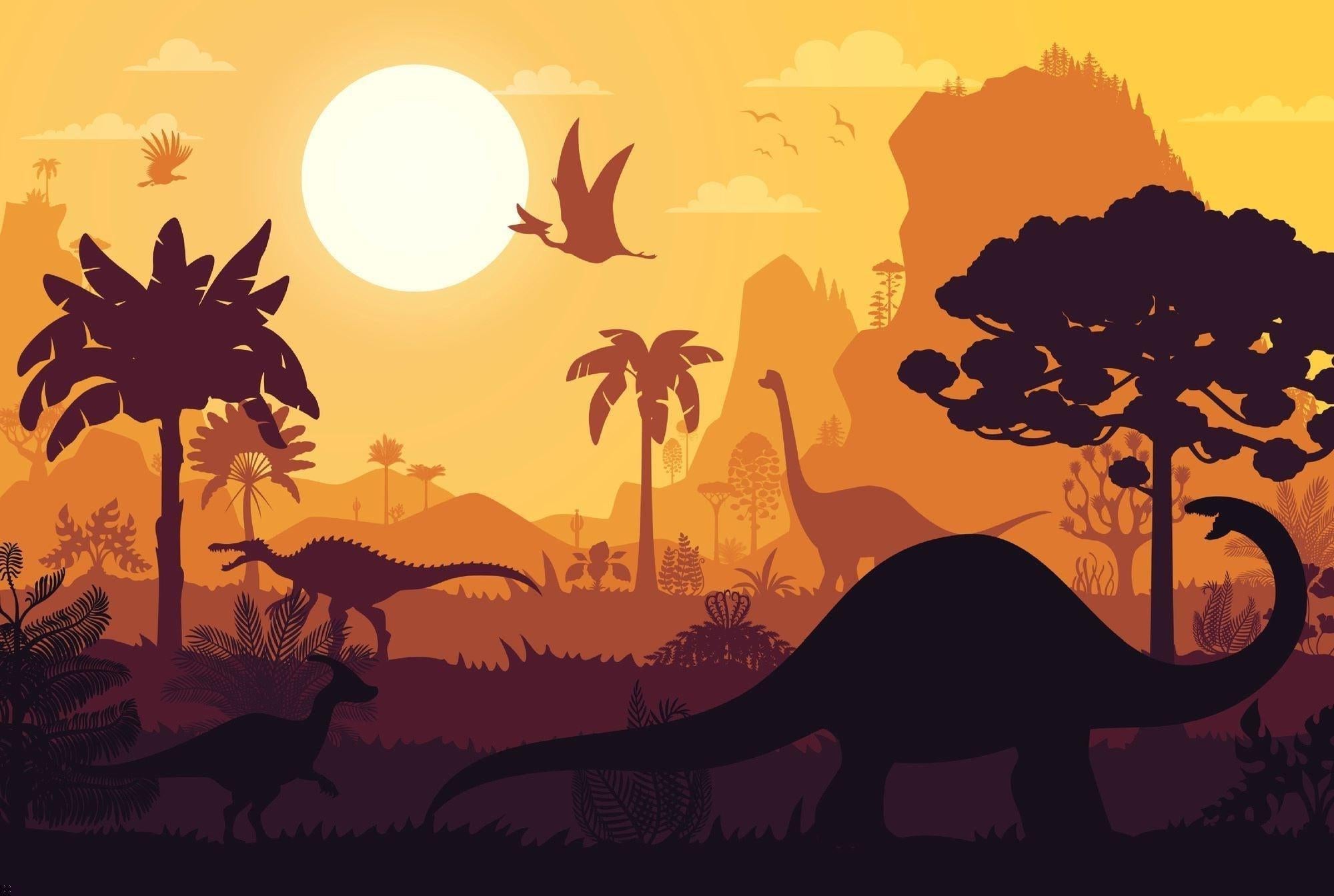 Papier Peint Mural Dinosaure | Paysage Préhistorique au Coucher du Soleil