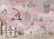 Papier Peint Mural Animaux pour Enfants | Parade d'Aventure dans le Ciel Rose