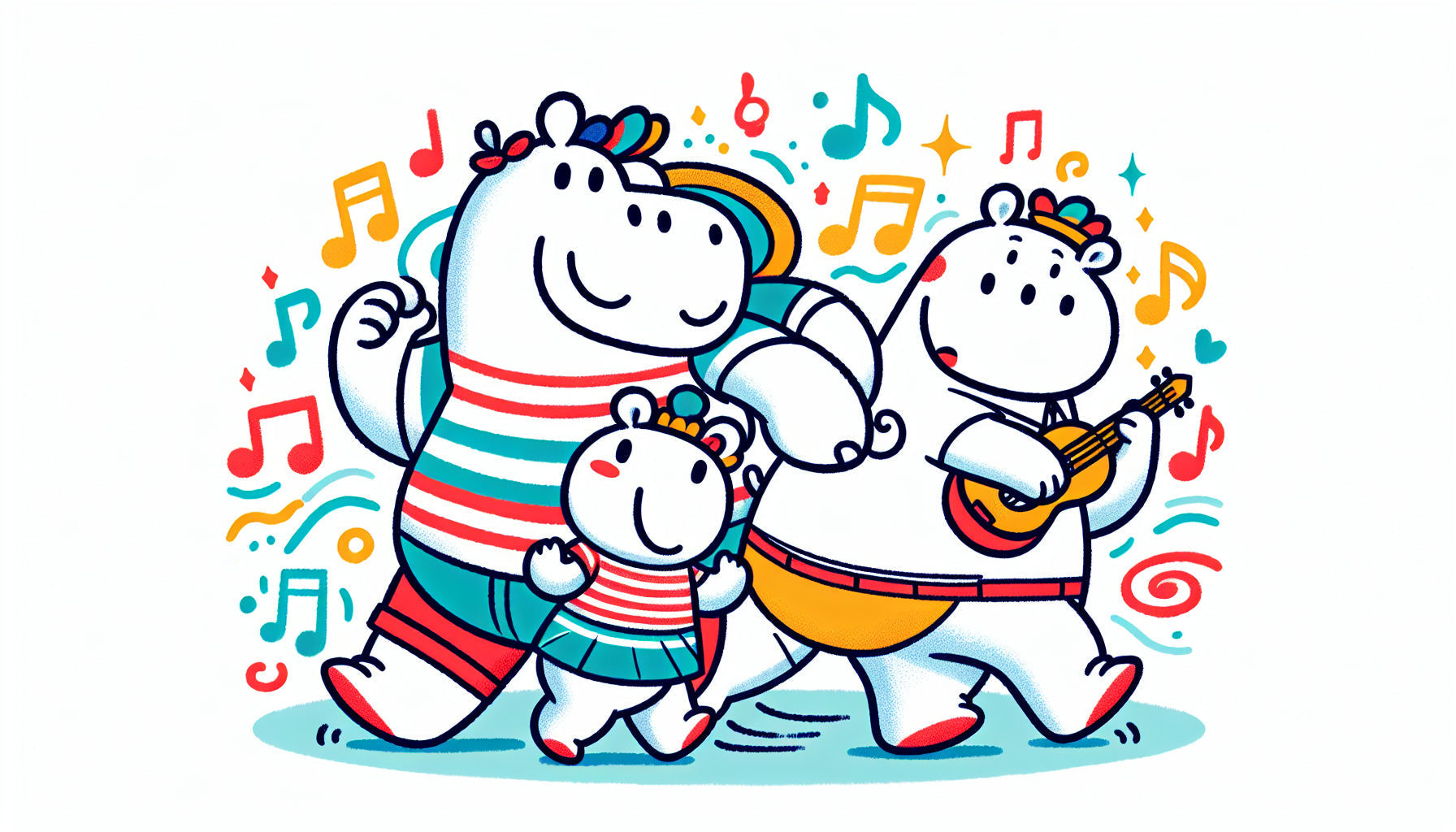 Papier Peint Mural pour Enfants | Famille d'Hippos Musicaux en Danse