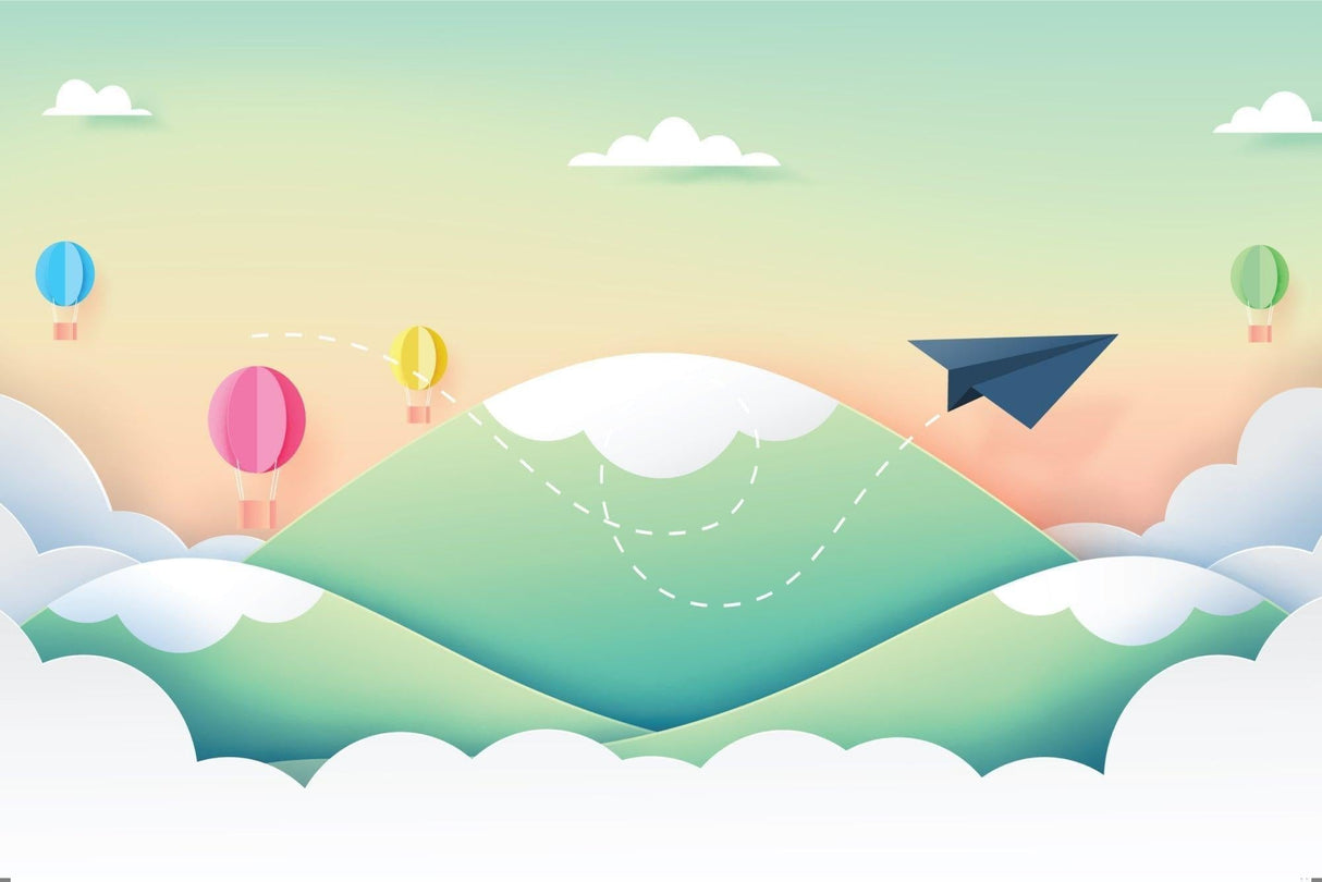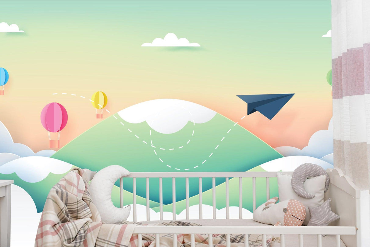 Papier Peint Mural pour Enfants | Aventure en Avion en Papier et Montgolfières