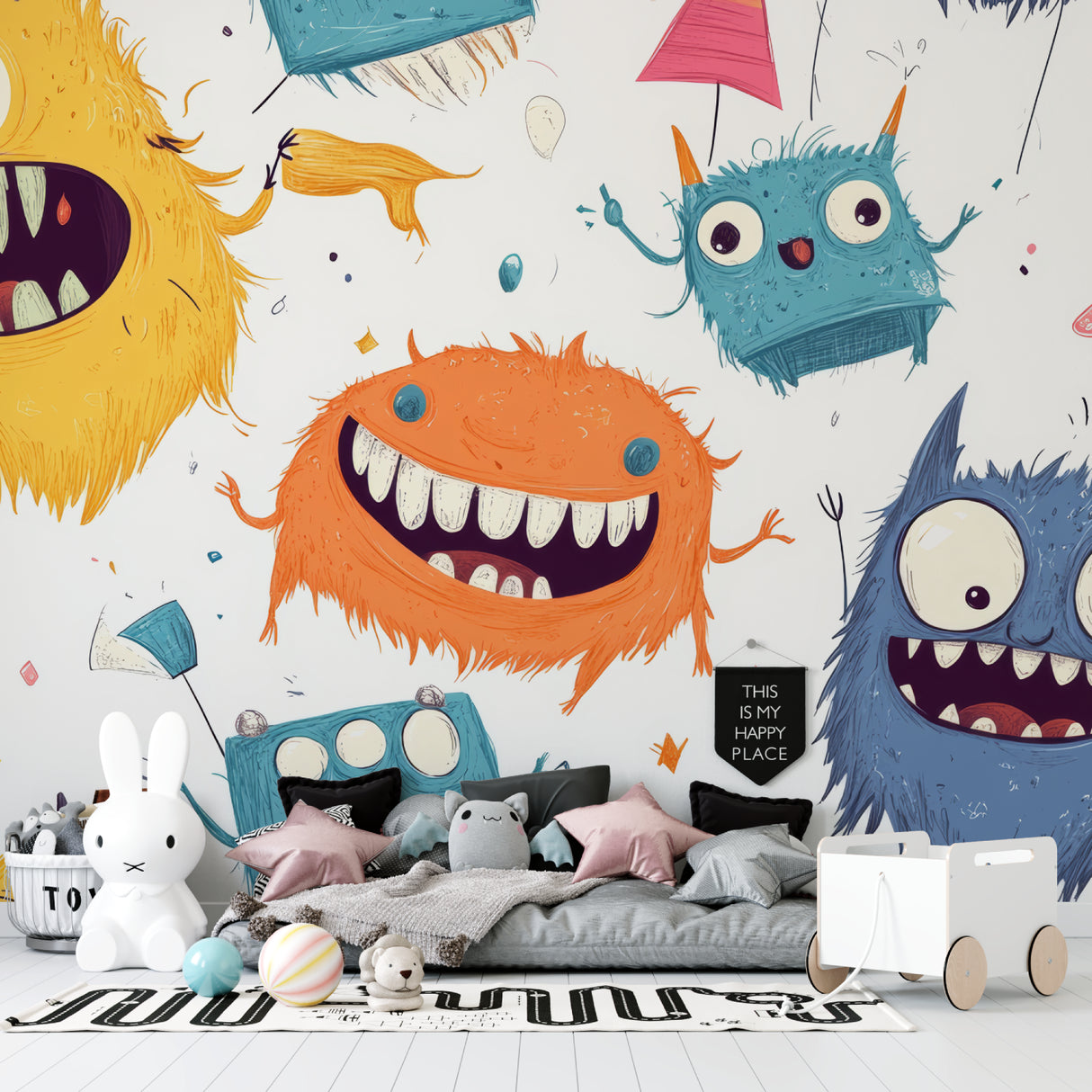Papier Peint Mural pour Enfants | Design Rigolo de Monstres Colorés