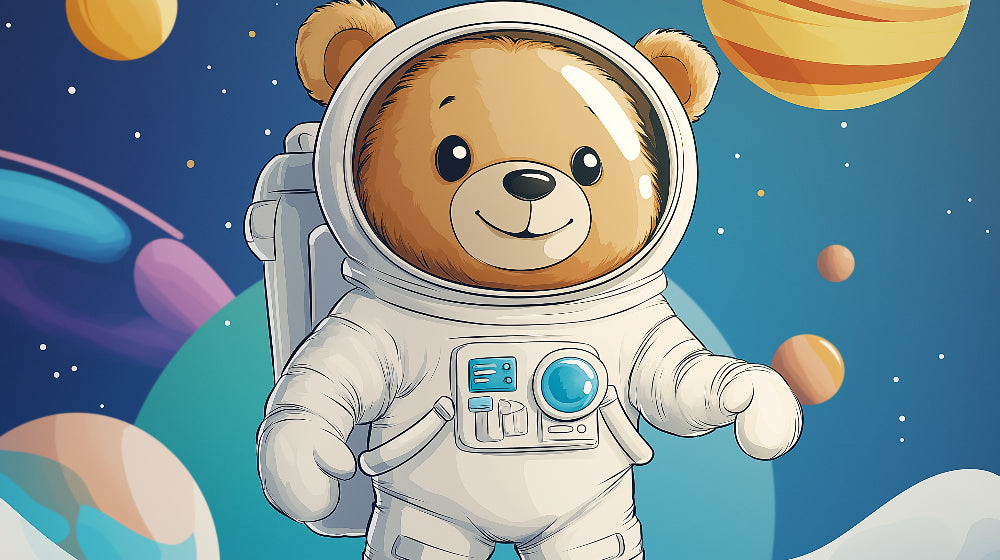 Notre papier peint ours astronaute apporte confort et aventure dans un design doux.
