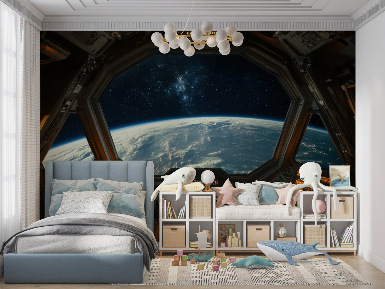 Papier Peint Mural Espace | Vue de la Terre depuis la Fenêtre d'un Vaisseau Spatial