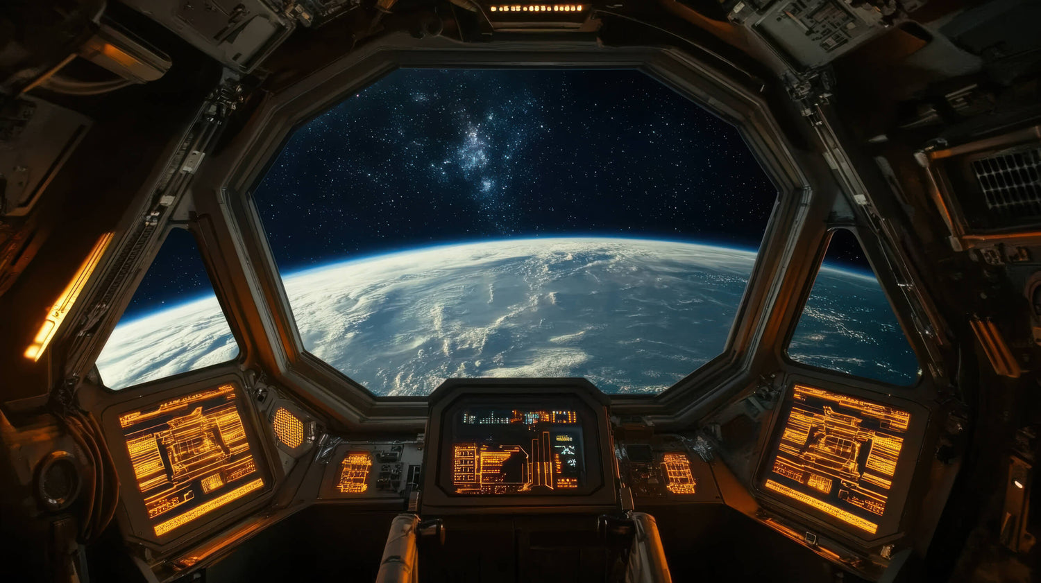 Cette fresque de fenêtre de station spatiale vous place en orbite au-dessus de la Terre.
