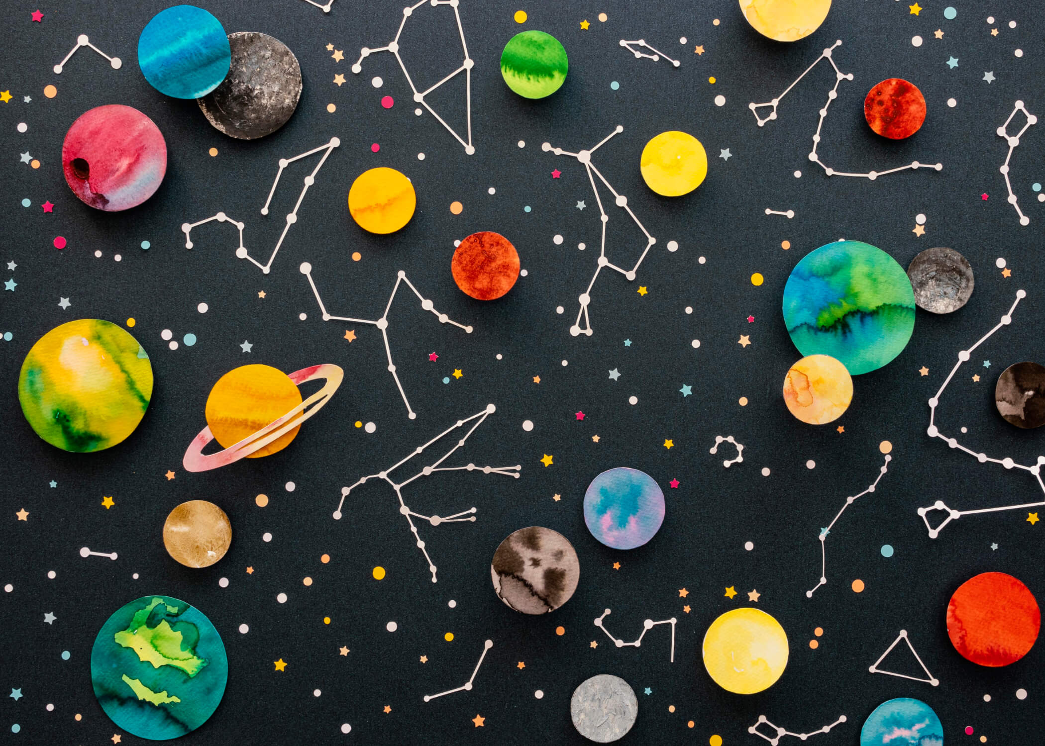 Papier Peint Mural Espace | Planètes Colorées et Constellations