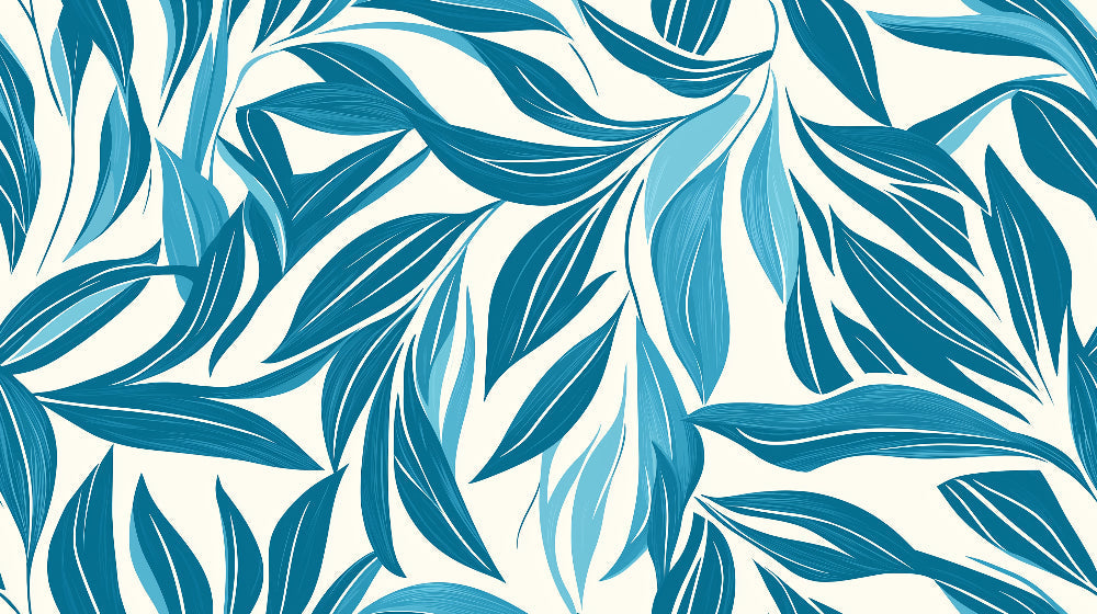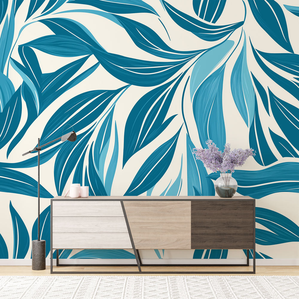 Papier Peint Mural Feuillage Tropical | Motif Moderne de Feuilles Bleues