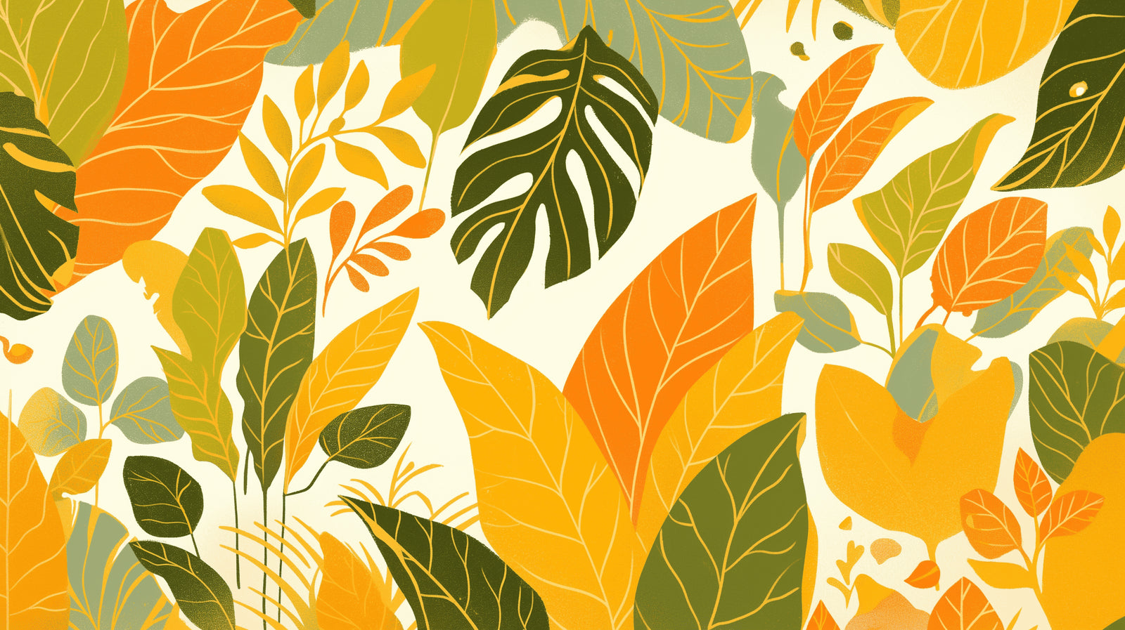 Papier Peint Mural Feuillage Tropical | Design Rétro Monstera Orange et Vert