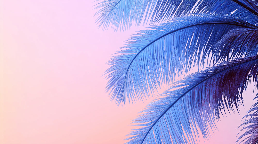 Papier Peint Mural Tropical | Feuilles de Palmier Bleues sur Ciel Rose