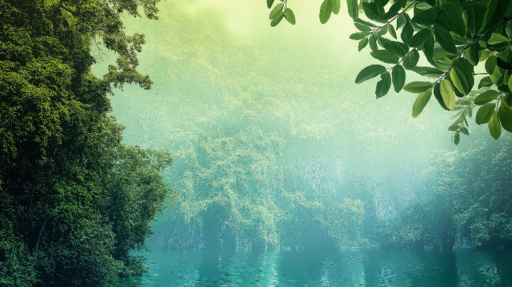 Ce papier peint lac forestier capture la beauté éthérée d'un matin brumeux où le feuillage vert émeraude rencontre des eaux tranquilles. Le dégradé fascinant va du menthe doux au turquoise profond, créant un mélange harmonieux de ciel et de reflets d'eau. Encadré par des feuilles vert vif et des arbres majestueux, ce papier peint scène naturelle apporte une profondeur envoûtante qui attire le regard dans sa nature paisible.
