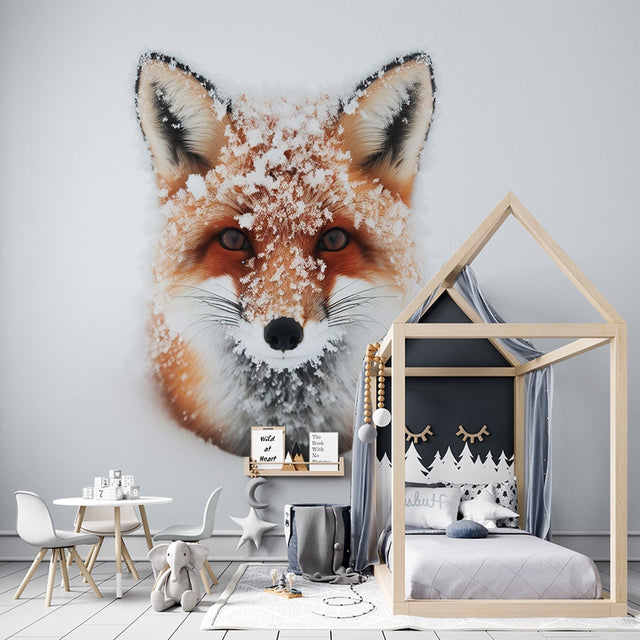 Ce papier peint renard des neiges transforme vos murs en une fenêtre sur la magie de l'hiver.