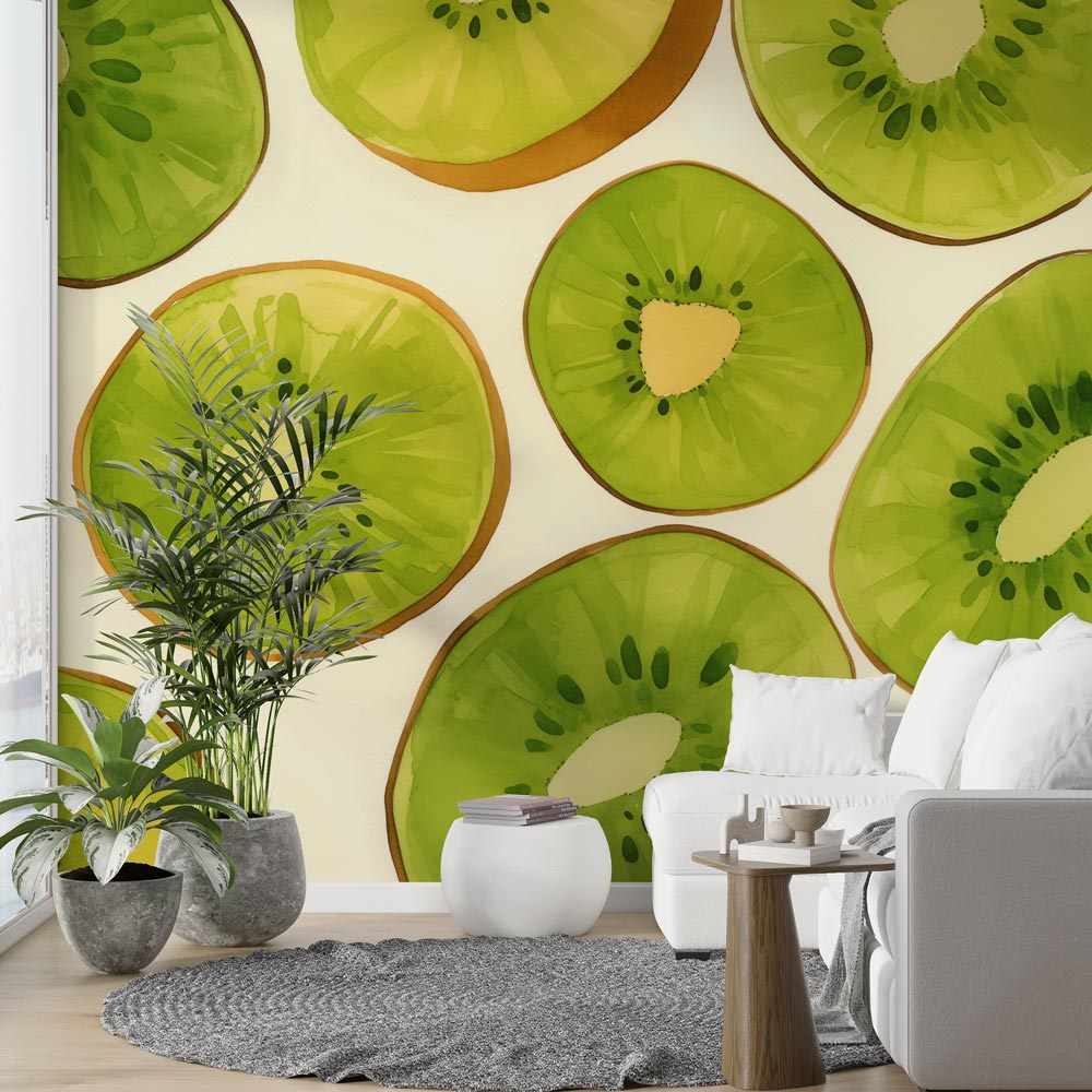 Papier Peint Mural Fruit | Design Motif Kiwi Frais