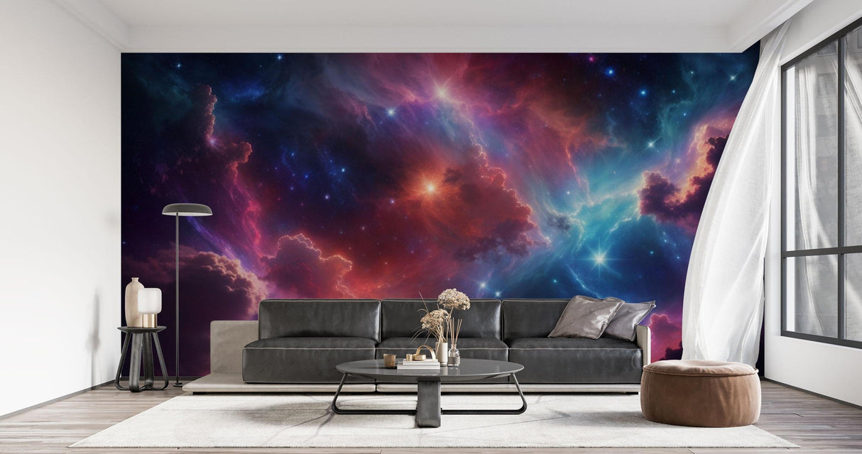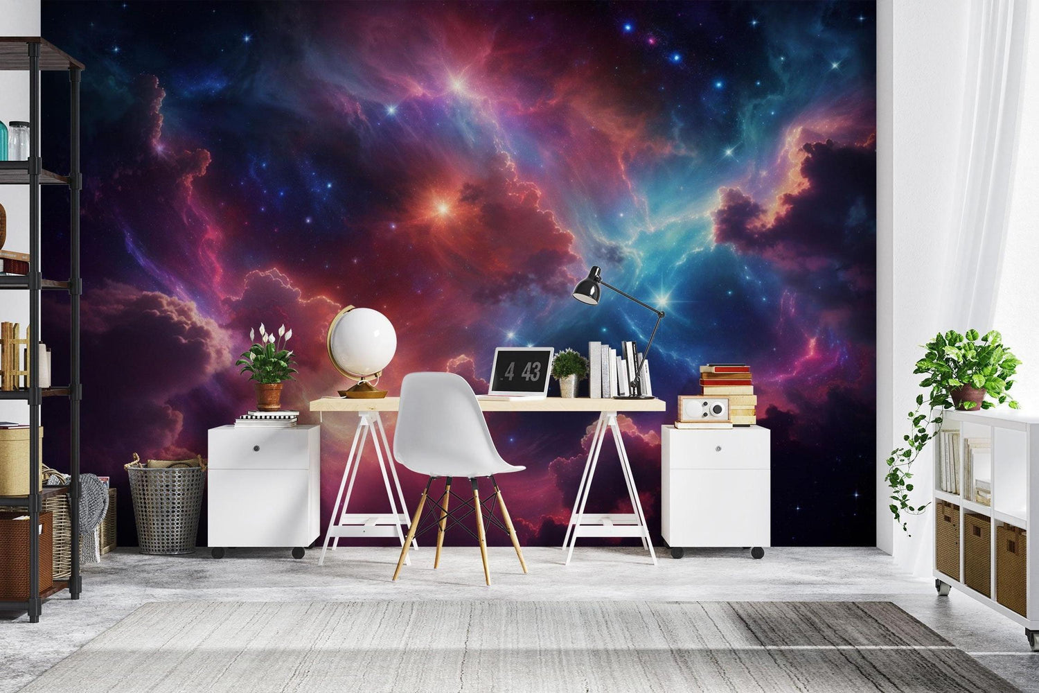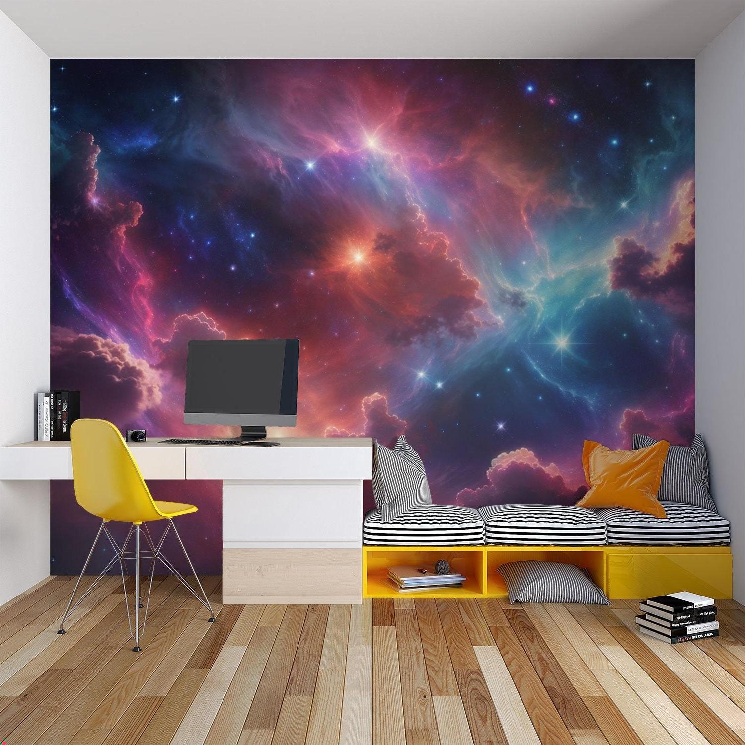Transformez n'importe quel intérieur en une porte vers le cosmos avec ce papier peint nébuleuse spatiale. Que ce soit pour décorer une chambre, un bureau à domicile ou un espace de jeu, cette fresque murale céleste ajoute profondeur et émerveillement à votre environnement. Le mélange hypnotisant de couleurs et d'éléments célestes crée une atmosphère de possibilités infinies et d'inspiration cosmique, rendant votre espace sans limites et extraordinaire.