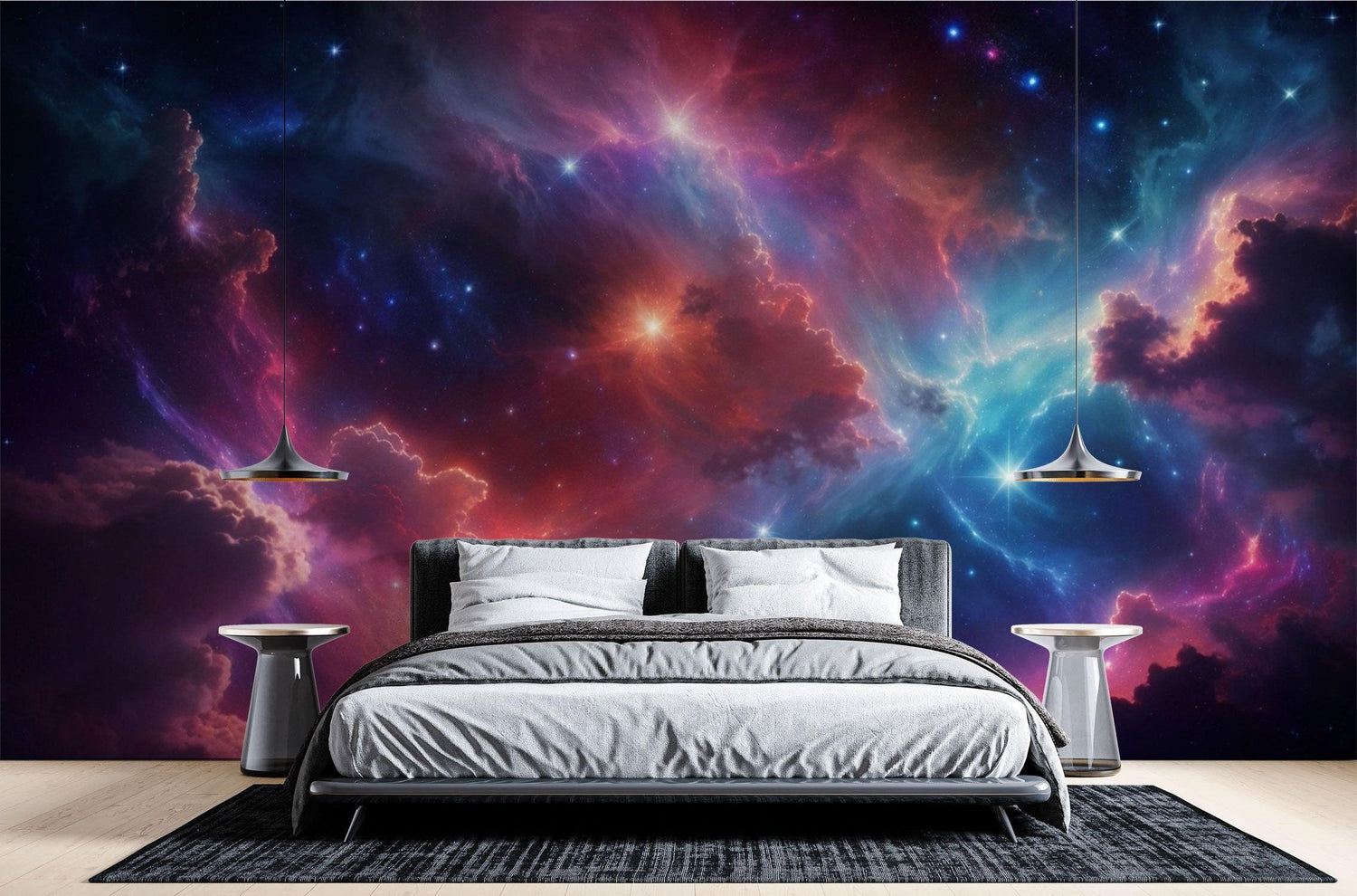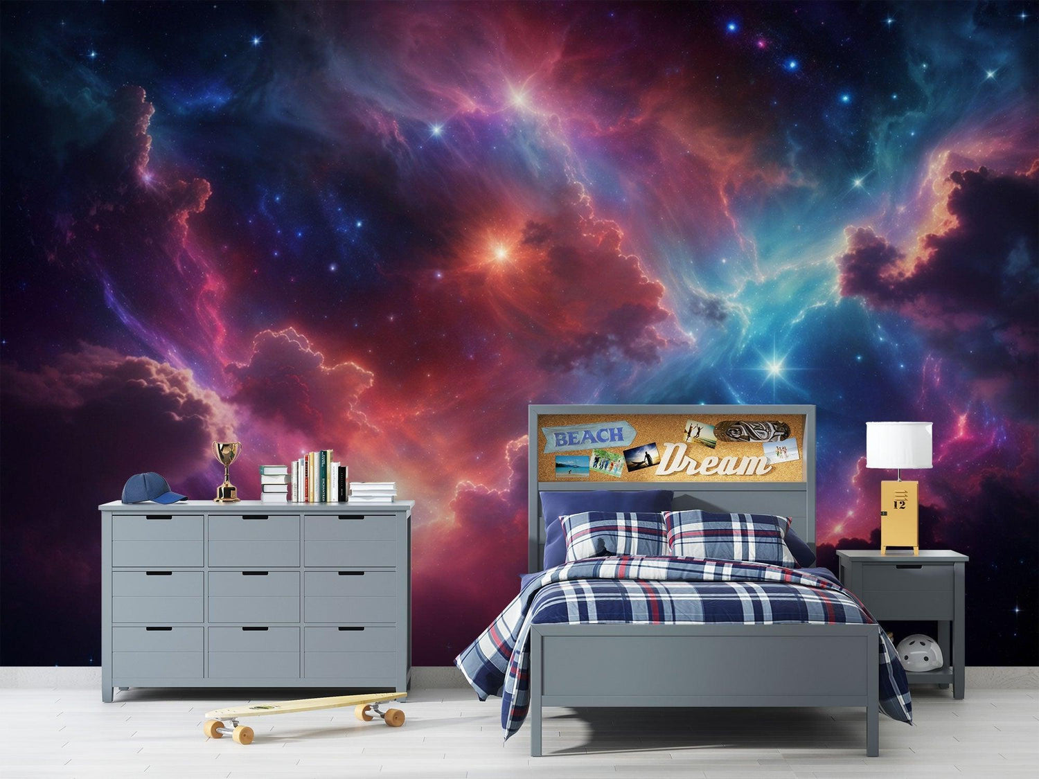 Papier Peint Mural Galaxie | Nébuleuse Cosmique avec Aurore Vibrante