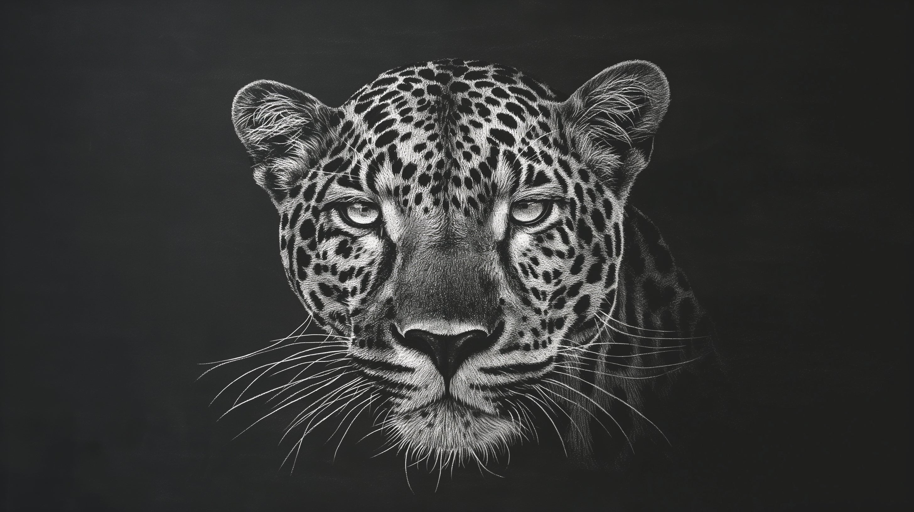 Ce papier peint léopard noir et blanc saisissant met en valeur la puissance brute et la beauté indomptée du prédateur le plus énigmatique de la nature. Le portrait méticuleusement détaillé capture chaque motif de taches complexe et chaque moustache, tandis que le regard perçant de ce majestueux papier peint grand félin crée un point focal immédiat. La palette monochromatique sur fond noir profond réalise un contraste dramatique qui met en avant les traits distinctifs du léopard et sa présence sophistiquée.