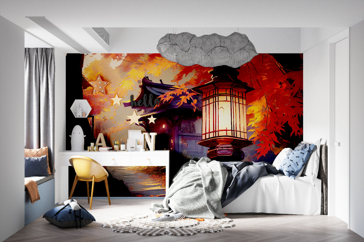 Papier Peint Mural Japonais | Scène de Jardin aux Lanternes d'Automne