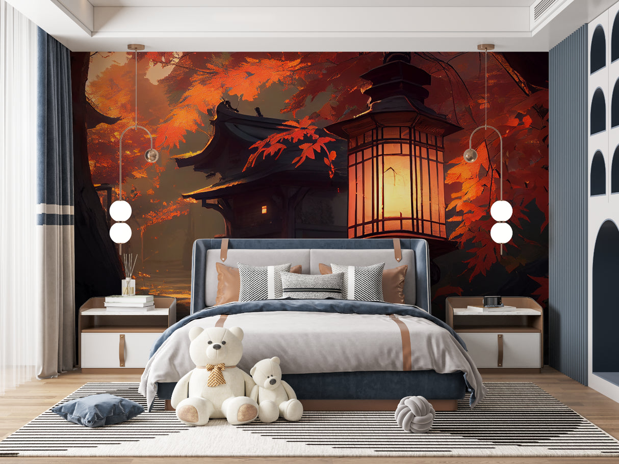 Ce papier peint lanterne japonaise transforme n'importe quelle pièce en un refuge paisible.