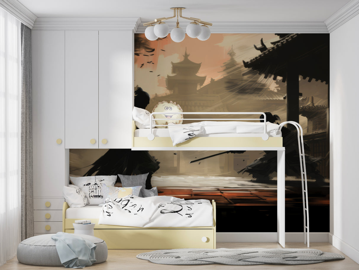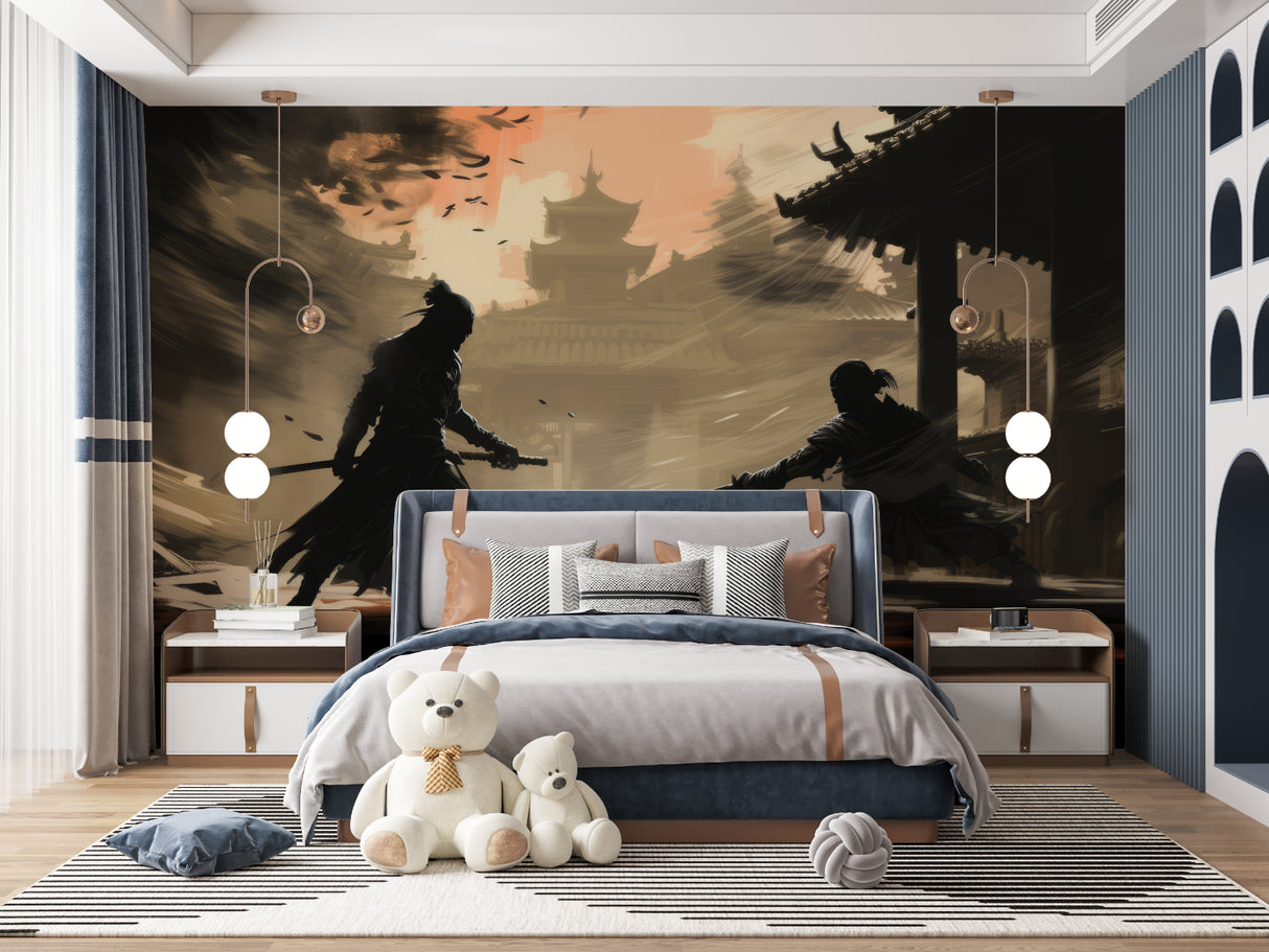 Chaque détail du papier peint guerrier japonais apporte une atmosphère authentique.