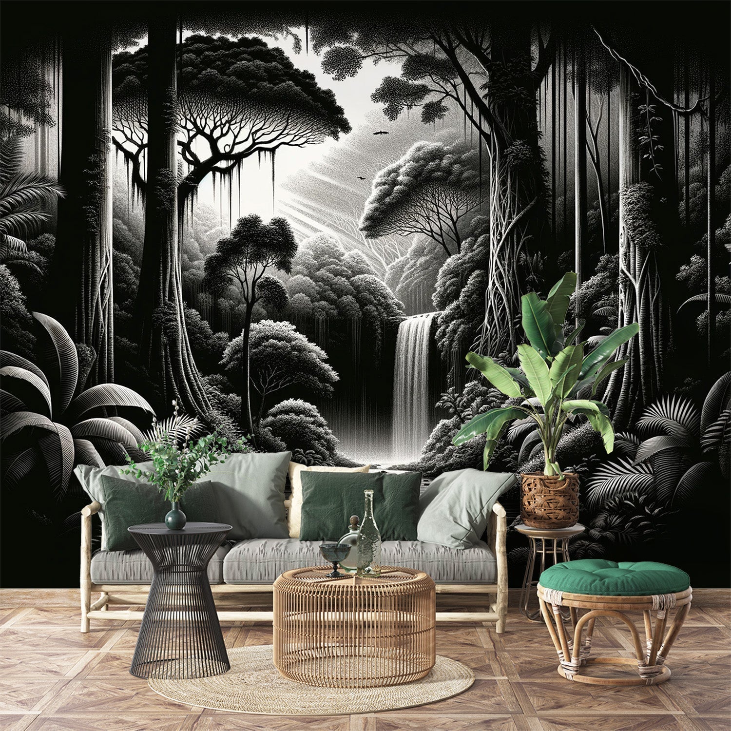 La scène de forêt tropicale transforme les pièces ordinaires en havres de paix.