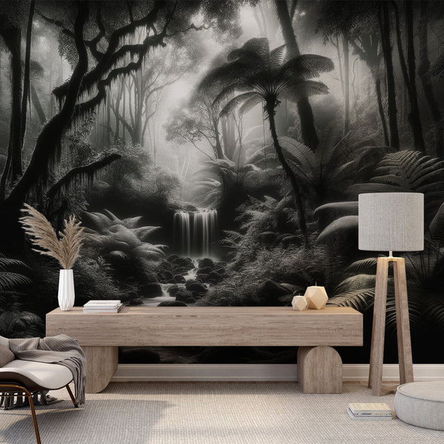 Papier Peint Mural Jungle | Paradis de Cascade Monochrome
