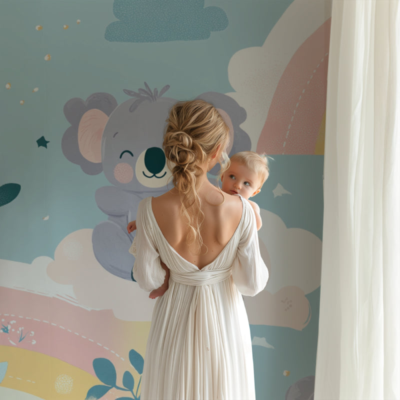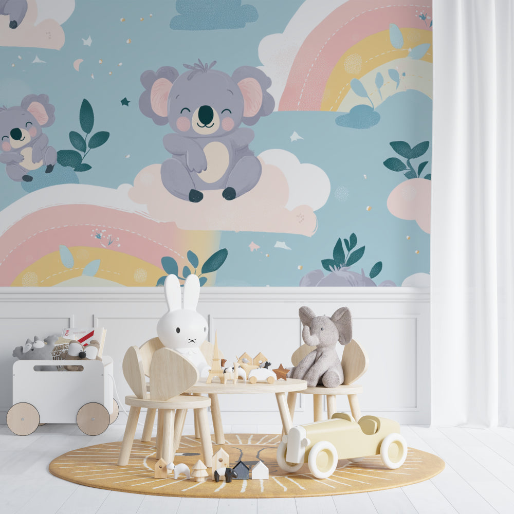 Papier Peint Mural Koala | Design Pastel Arc-en-ciel pour Chambre de Bébé