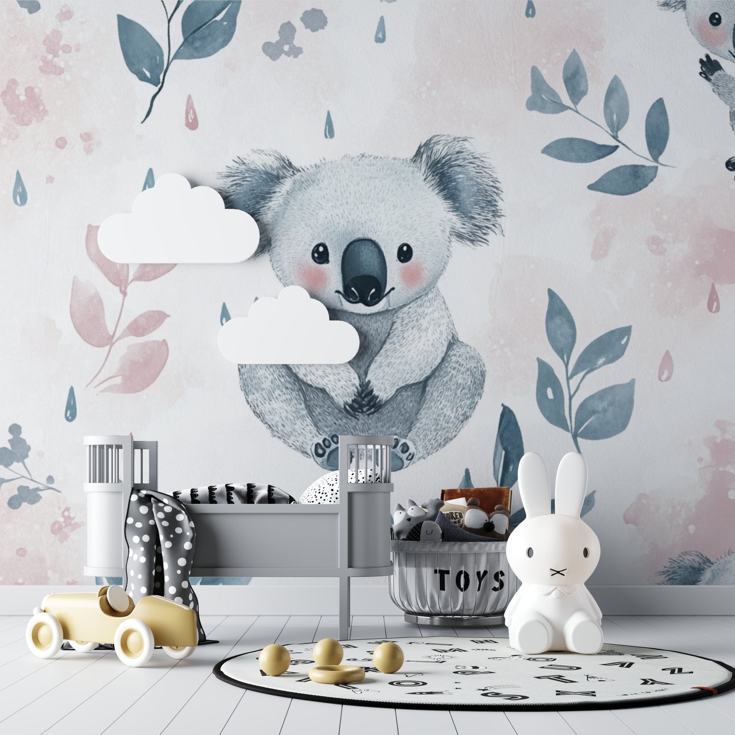Papier Peint Mural Koala | Design Doux Rose et Bleu pour Chambre de Bébé