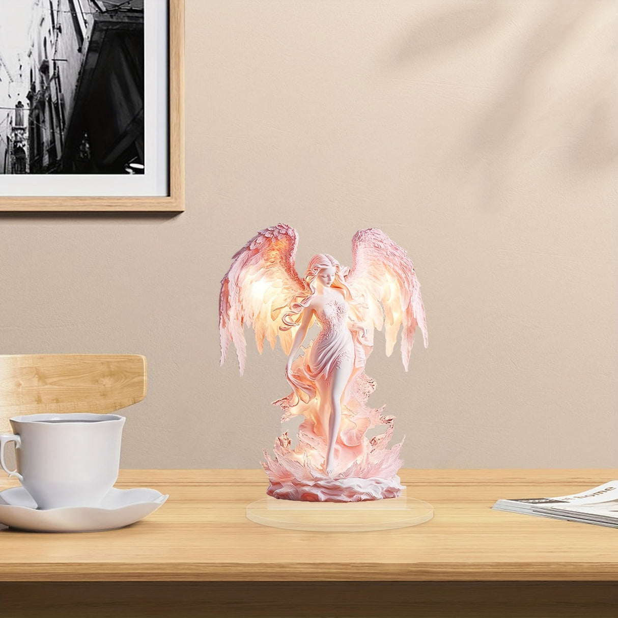 Transformez votre intérieur avec cette lampe de table décorative ange. La figurine sculptée présente des ailes illuminées qui créent une lueur douce et ambiante, parfaite pour instaurer une atmosphère sereine dans n'importe quelle pièce. Cette pièce d'éclairage artistique allie attrait décoratif et éclairage fonctionnel dans un design époustouflant.
