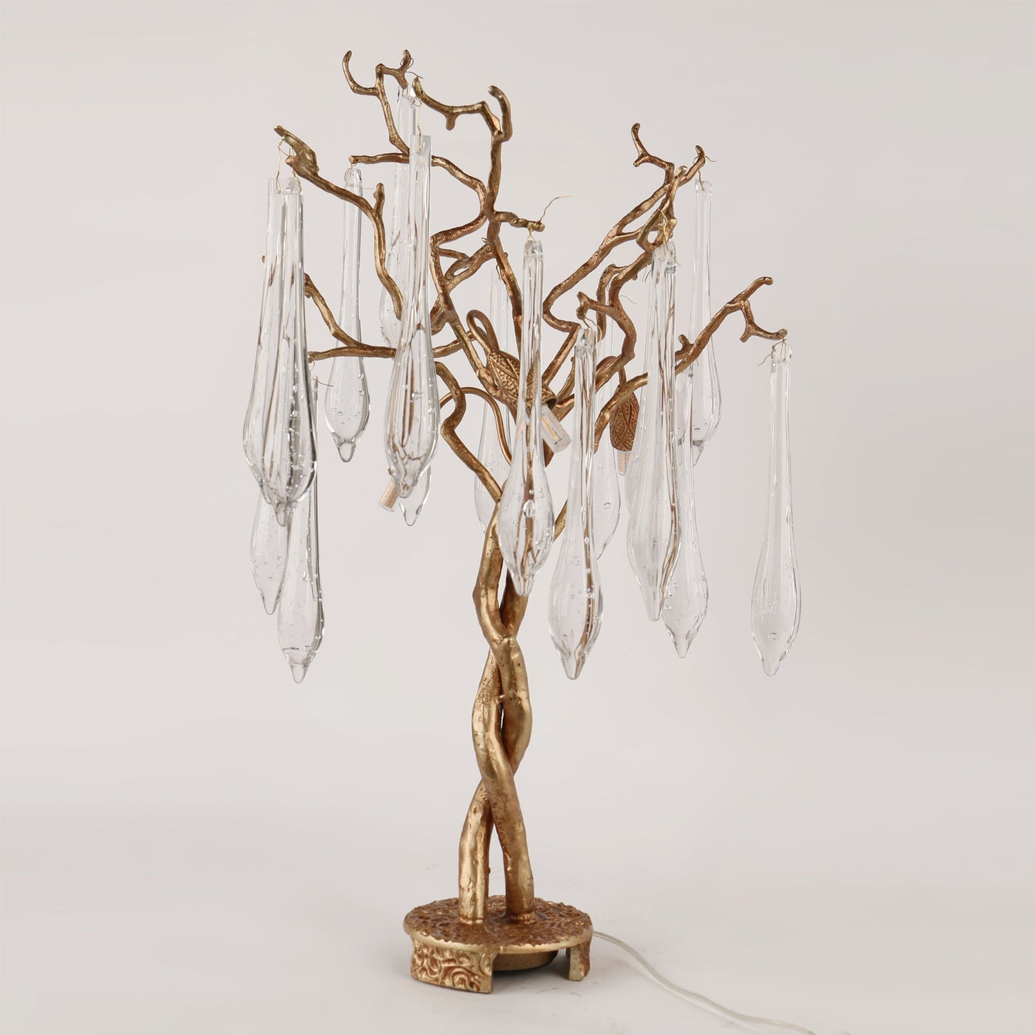 Lampe de table branche en cristal | Cadre en laiton avec gouttelettes en verre