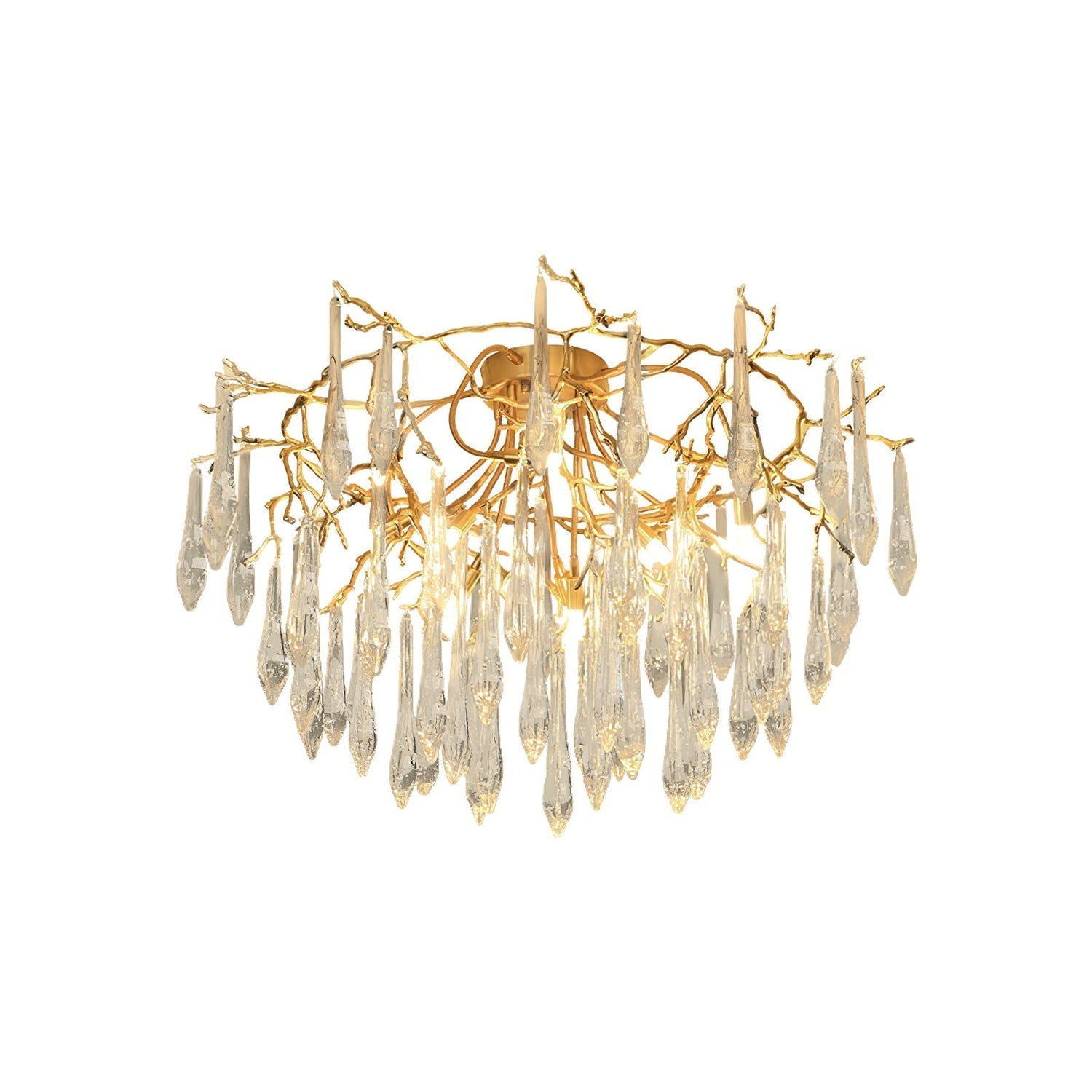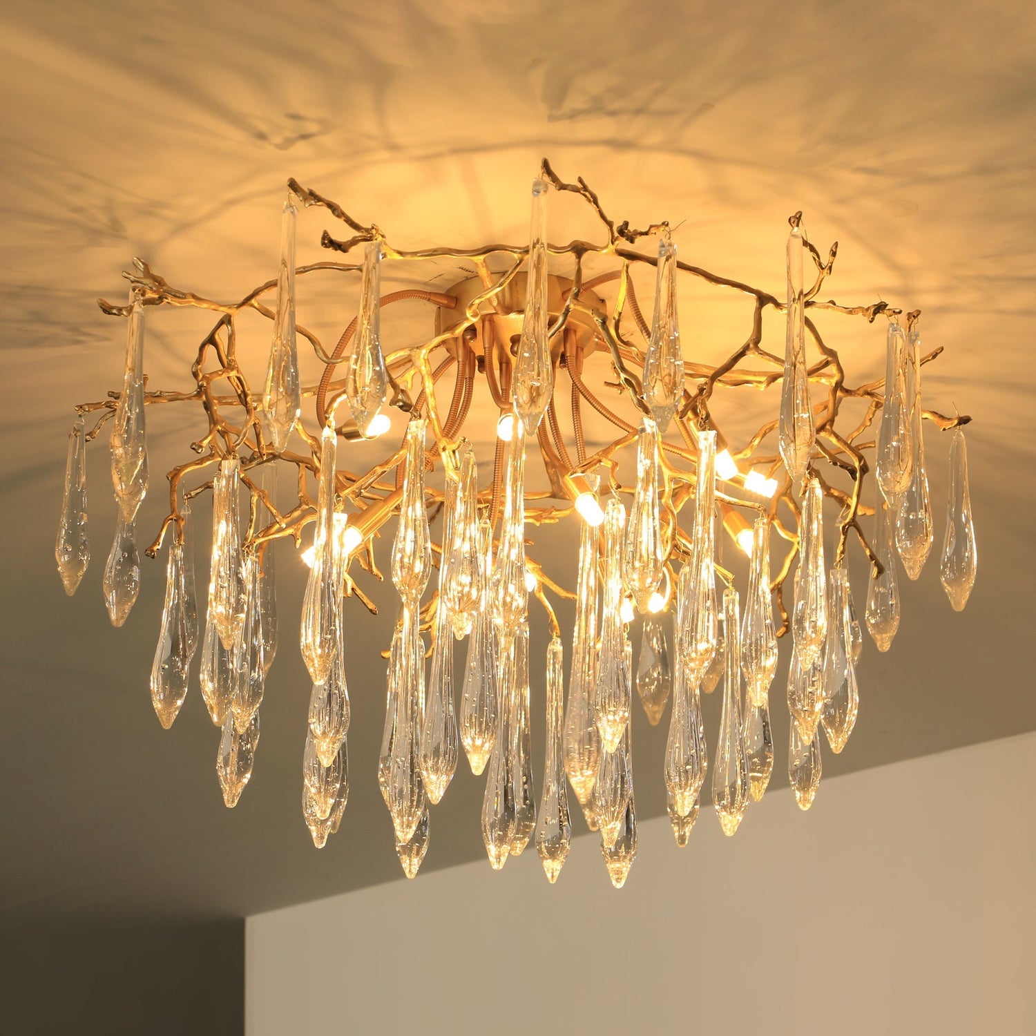 Lampe de plafond en cristal | Cadre en laiton avec gouttelettes en verre