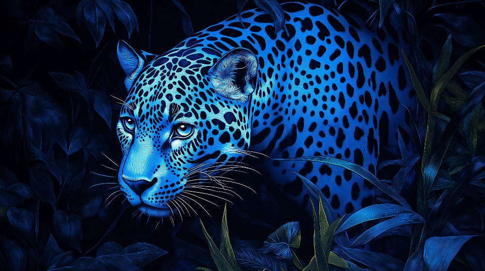 Papier Peint Mural Léopard | Bête de la Jungle Bleu Néon