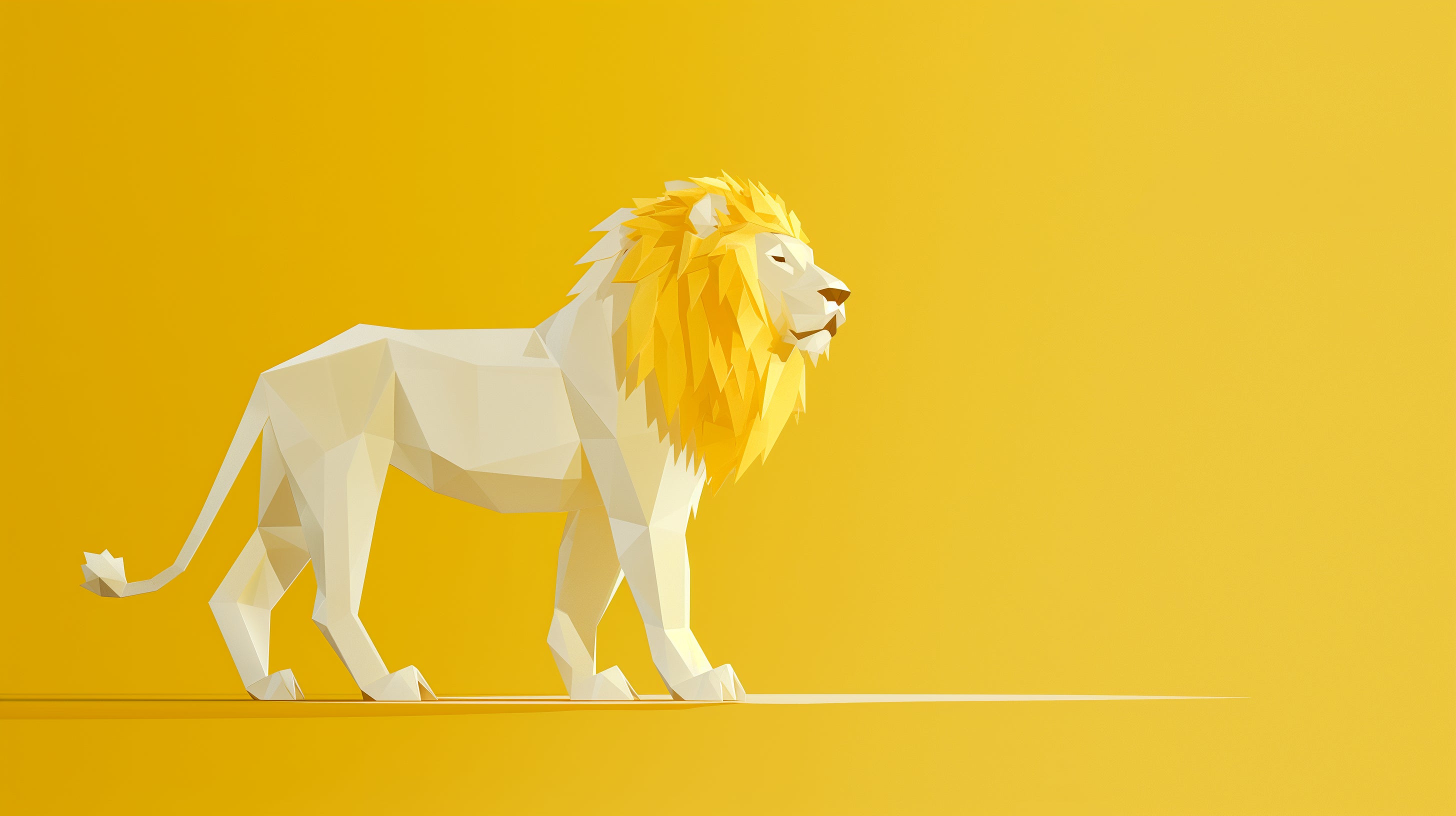 Ce papier peint lion géométrique présente un mélange magistral d'art moderne et de simplicité audacieuse. Le majestueux lion blanc, rendu en formes polygonales précises, émerge d'un fond jaune vibrant avec une dimensionnalité étonnante. La crinière dorée distinctive crée un contraste saisissant avec le corps immaculé de la créature, tandis que le design papier peint animalier 3D démontre une attention exceptionnelle à la précision géométrique et à la forme architecturale.