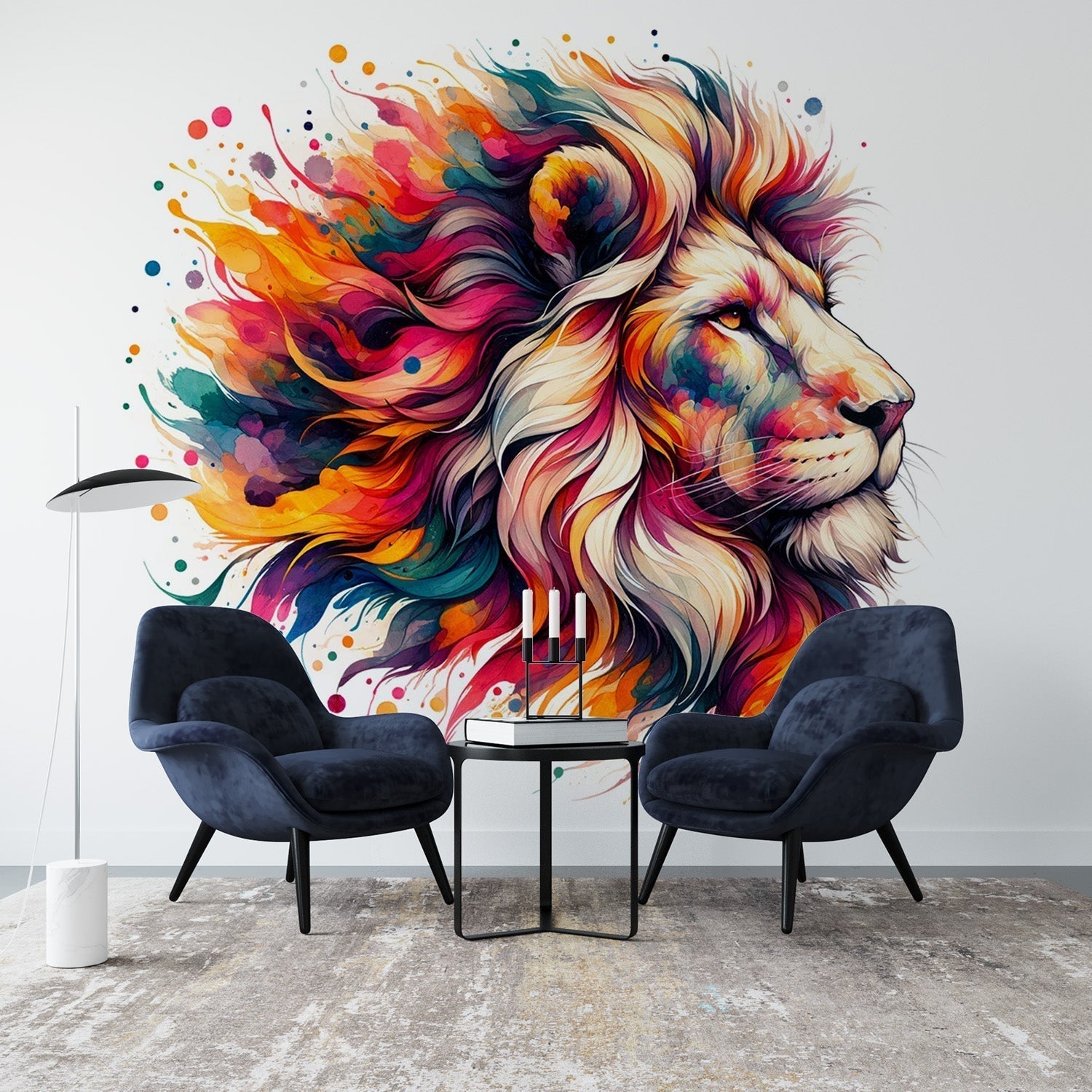 Papier Peint Mural Lion | Design Artistique Aquarelle Vibrant