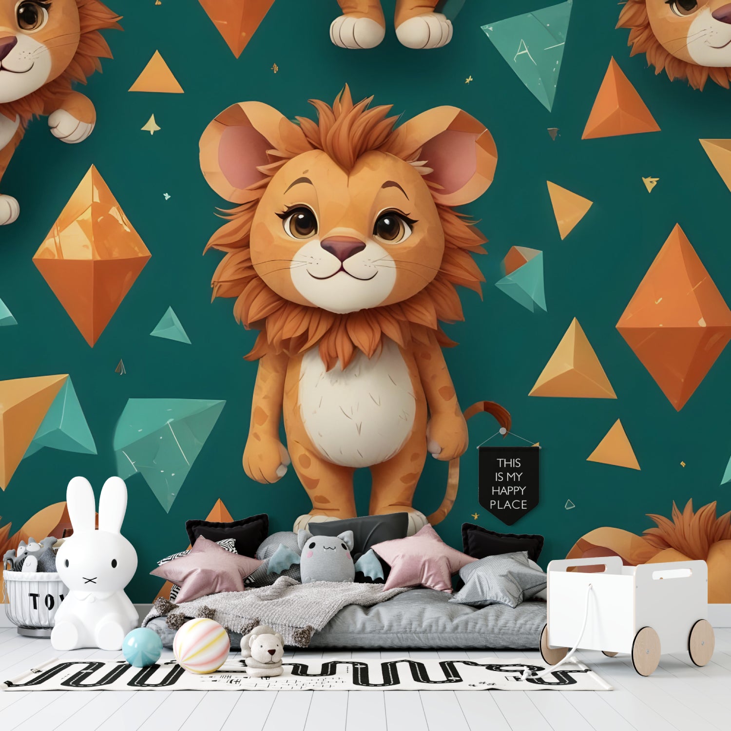 Parfait papier peint lion pour enfants qui allie jeu et design moderne.