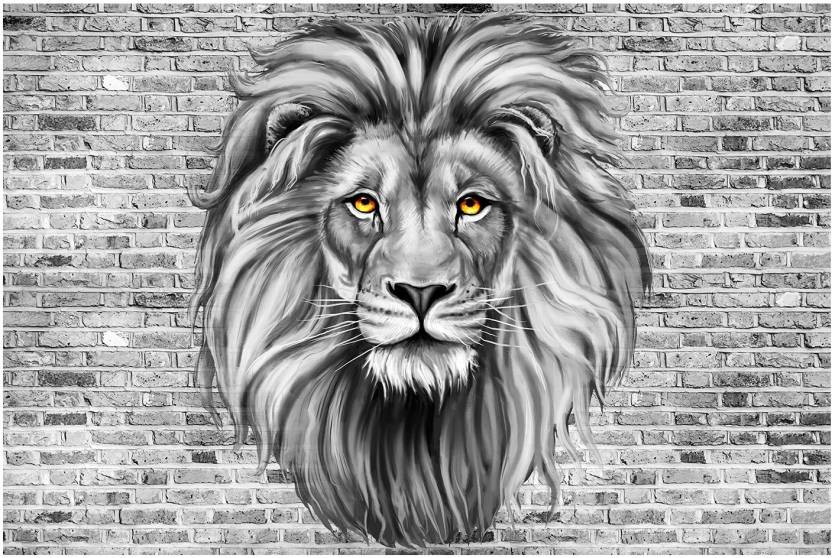 Papier Peint Mural Lion | Portrait Monochrome sur Brique Grise