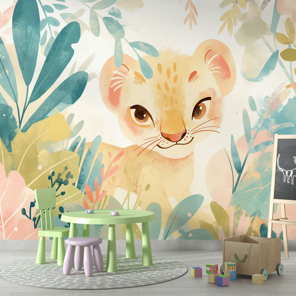 Papier Peint Safari Lionceau Doux pour Chambre de Bébé