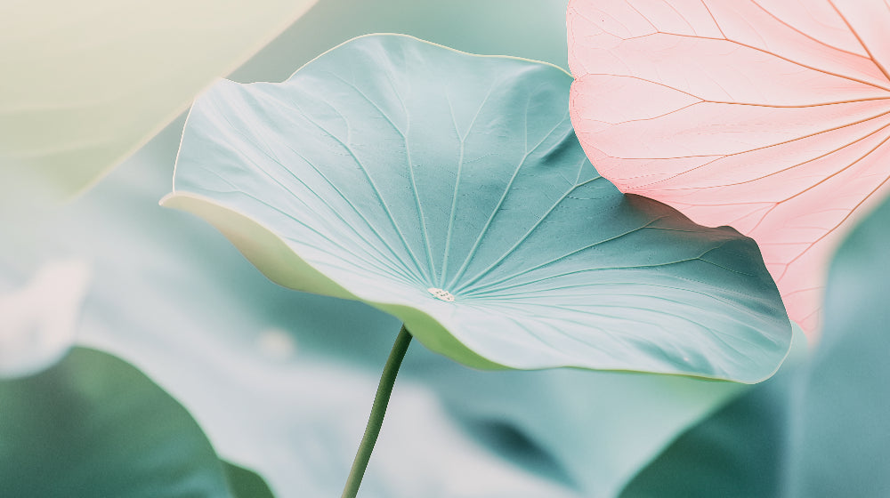 Papier Peint Mural Feuille de Lotus | Art Botanique Pastel Turquoise et Rose