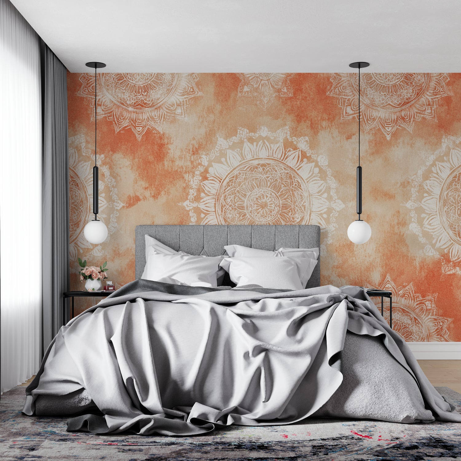 Papier Peint Mural Mandala | Motif Bohème Terre Cuite