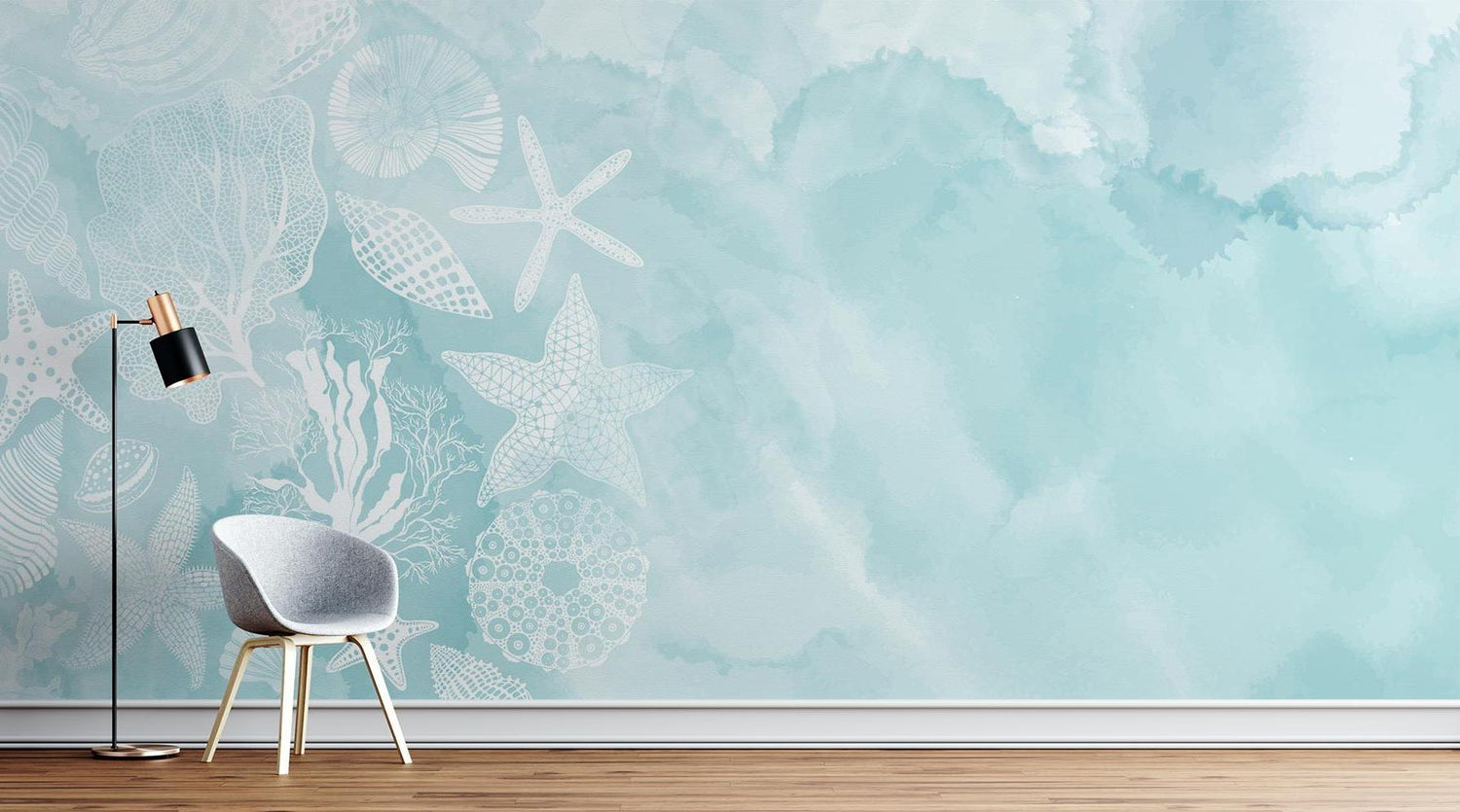Papier Peint Mural Vie Marine | Aquarelle Côtière Avec Étoile de Mer