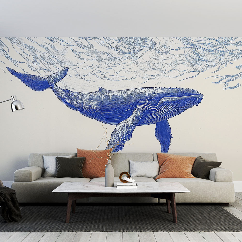 Papier Peint Mural Marin | Design Ligne Art Baleine Bleue