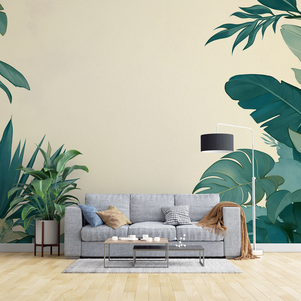 Papier Peint Mural Monstera | Feuilles Vertes Tropicales sur Beige