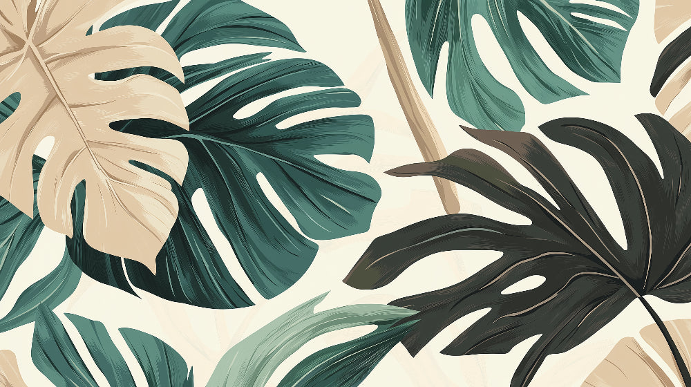 Ce papier peint monstera tropical présente de magnifiques feuilles surdimensionnées dans un mélange harmonieux de vert émeraude et de tons beige doux sur un fond crème. Chaque détail du papier peint feuille de monstera est méticuleusement rendu avec des coups de pinceau artistiques, créant une composition botanique sophistiquée qui capture l'essence de la flore tropicale. L'échelle dramatique des feuilles apporte un impact visuel audacieux tout en conservant une esthétique élégante et moderne.