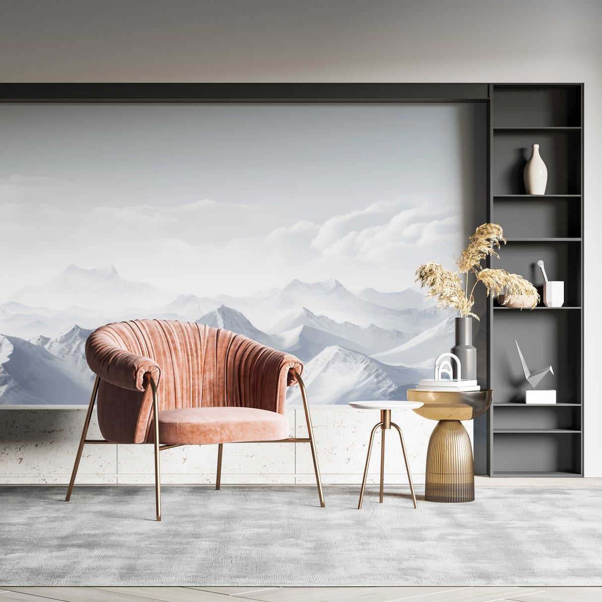 Notre papier peint des sommets enneigés transforme les murs ordinaires en fenêtres sur la nature.