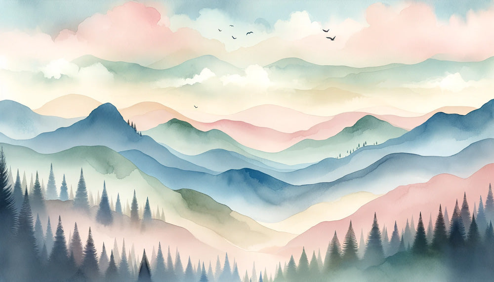 Papier Peint Mural Montagne | Paysage de Forêt Aquarelle Pastel