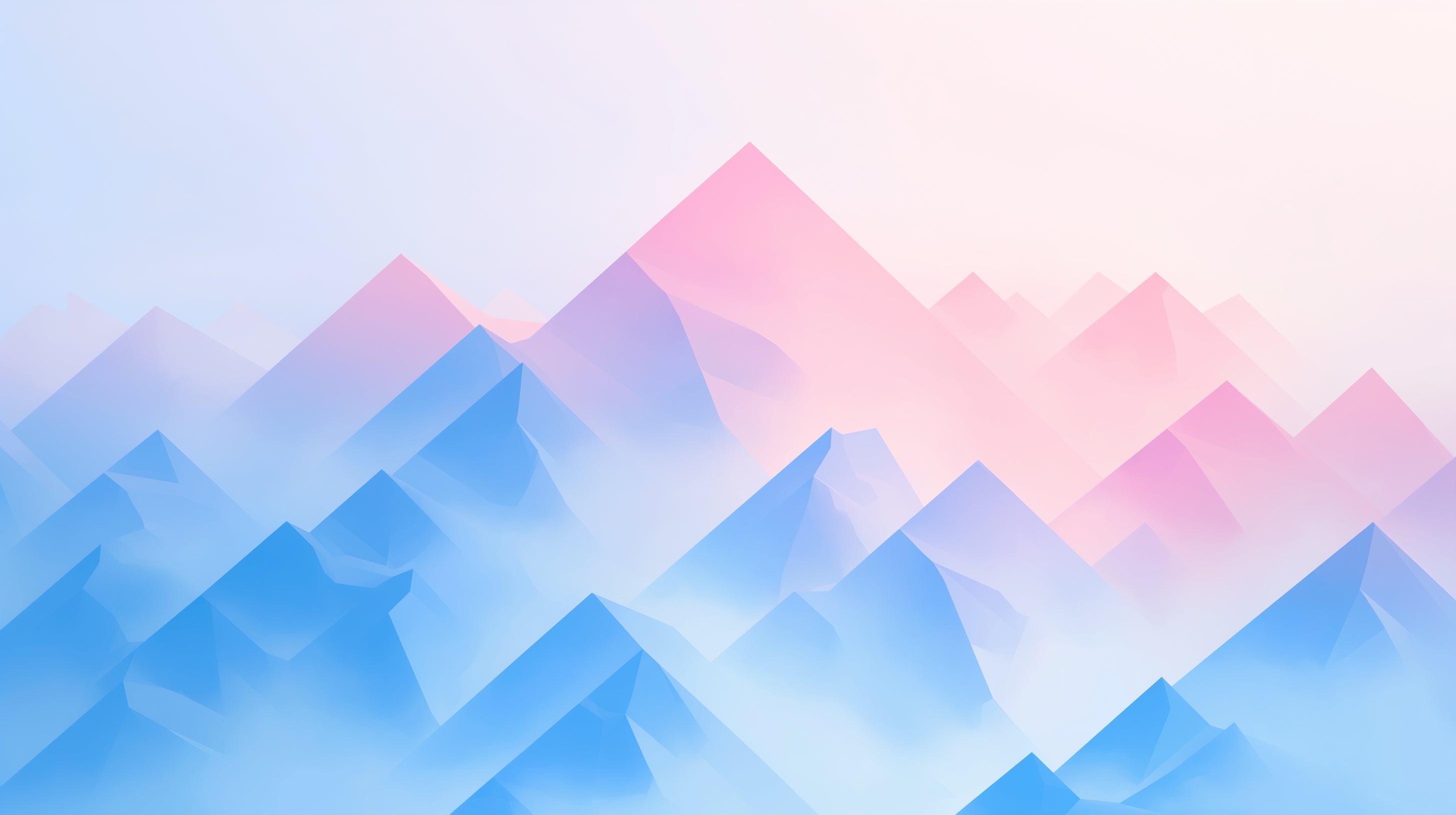 Ce papier peint montagne géométrique présente une série fascinante de sommets rendus en dégradés doux. La composition artistique fusionne des bases bleu froid avec des sommets rose pâle, créant une fresque murale montagne abstraite moderne qui capture la beauté éthérée des hauteurs brumeuses. Chaque plan géométrique se fond harmonieusement dans le suivant, formant un paysage harmonieux de formes cristallines baignées par la lumière du matin.
