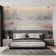 Ce papier peint panoramique montagne brumeuse ajoute un charme instantané aux murs vides.