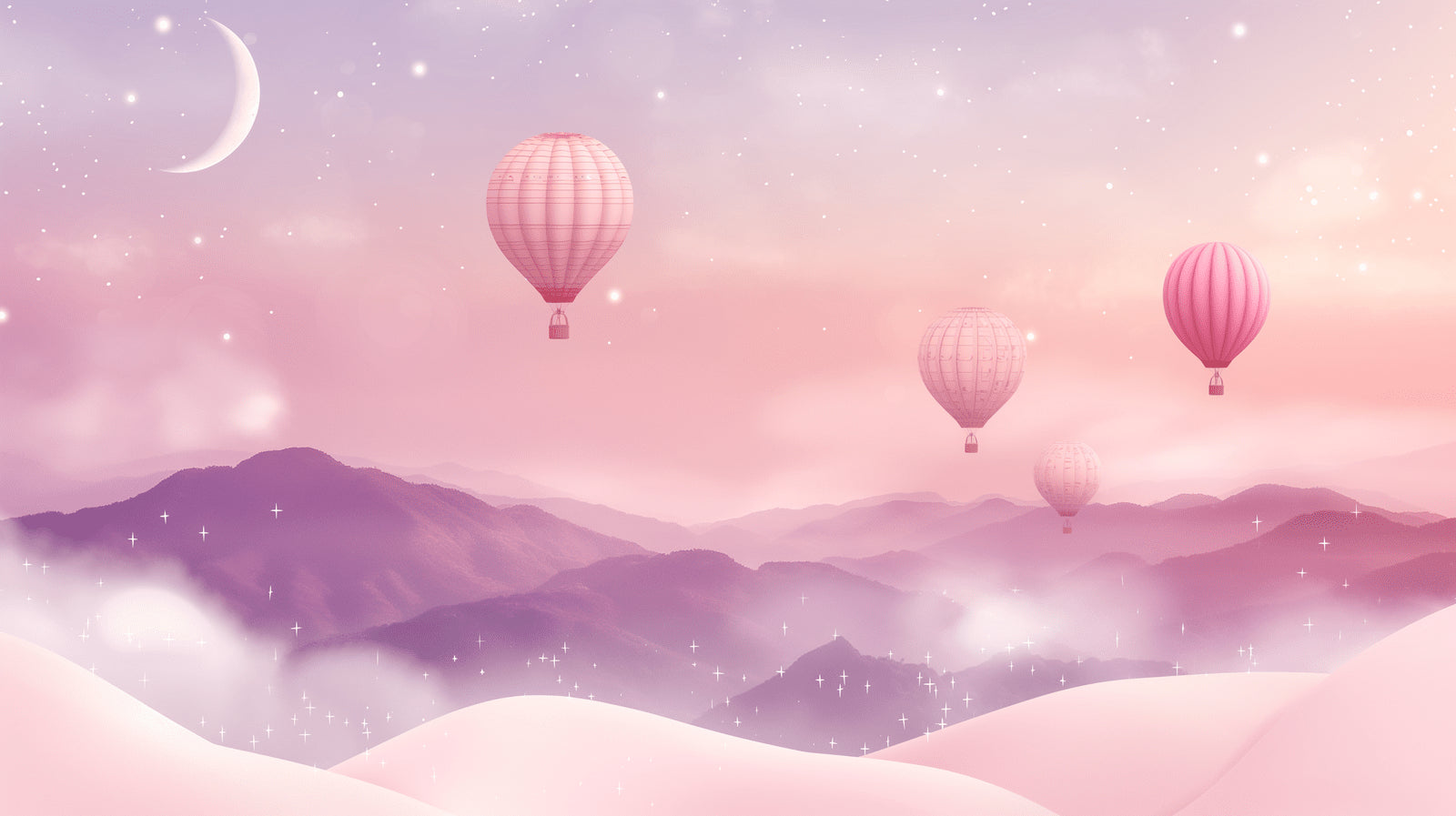 Ce papier peint montgolfière enchanteur crée une atmosphère de rêve avec son ciel rose doux parsemé d'étoiles scintillantes et d'un croissant de lune délicat. De majestueuses montgolfières roses flottent sereinement devant des silhouettes de montagnes violettes, créant des couches de profondeur et de merveille. Le papier peint montagne rose présente un mélange magistral de pourpres crépusculaires et de teintes rosées, diffusant une lueur magique sur toute la scène.