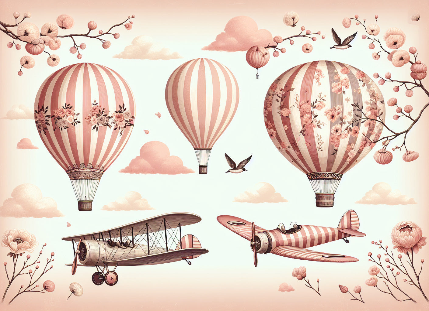 Papier Peint Mural Montgolfière | Aviation Vintage avec Motif Floral