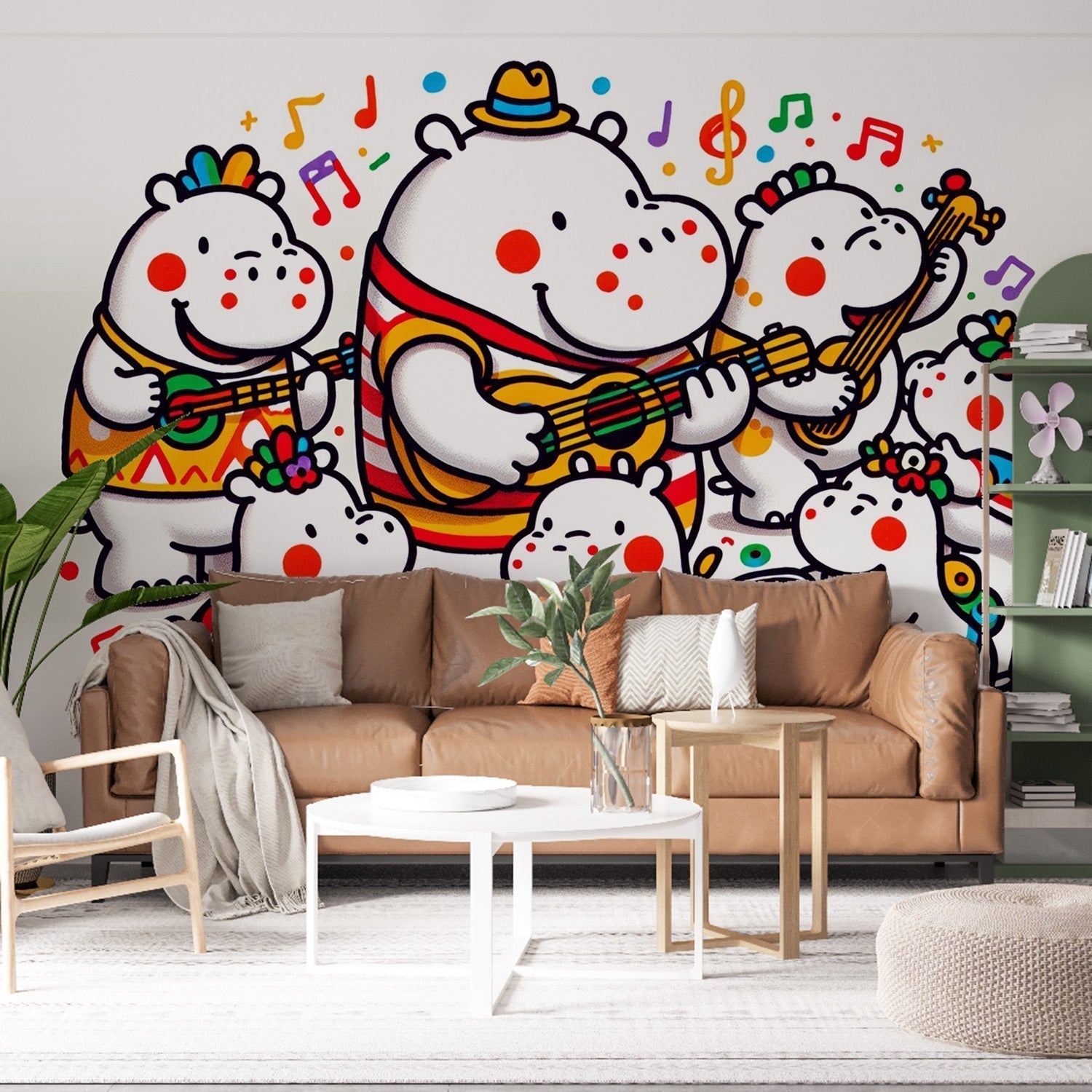Papier Peint Chambre d'Enfants Groupe Musical Hippopotame