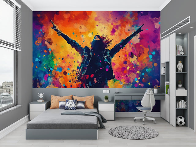 Chaque éclat de couleur raconte une histoire de passion et de rythme, rendant ce papier peint rock star inoubliable.