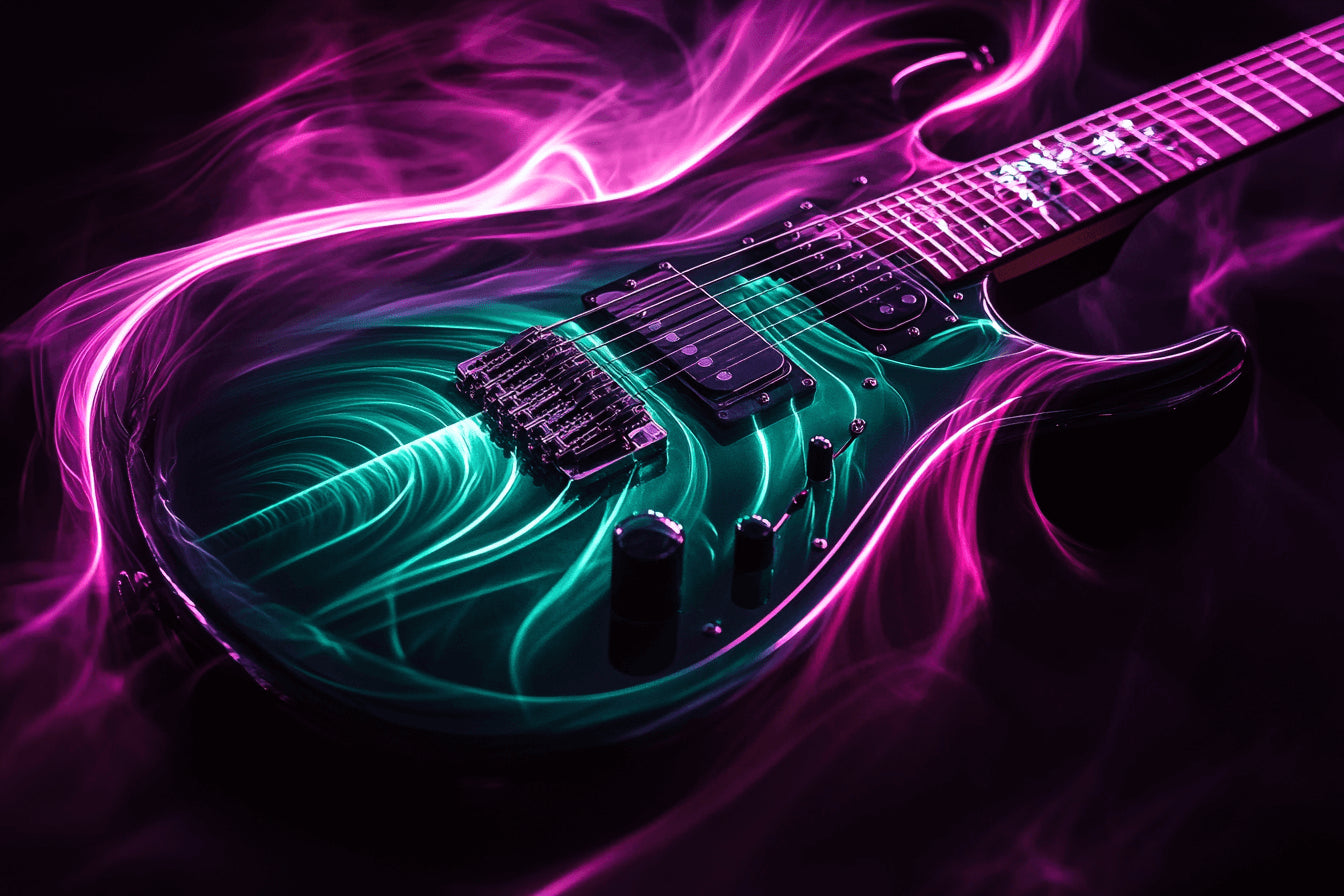 Ce papier peint guitare néon apporte une énergie électrique à vos murs.