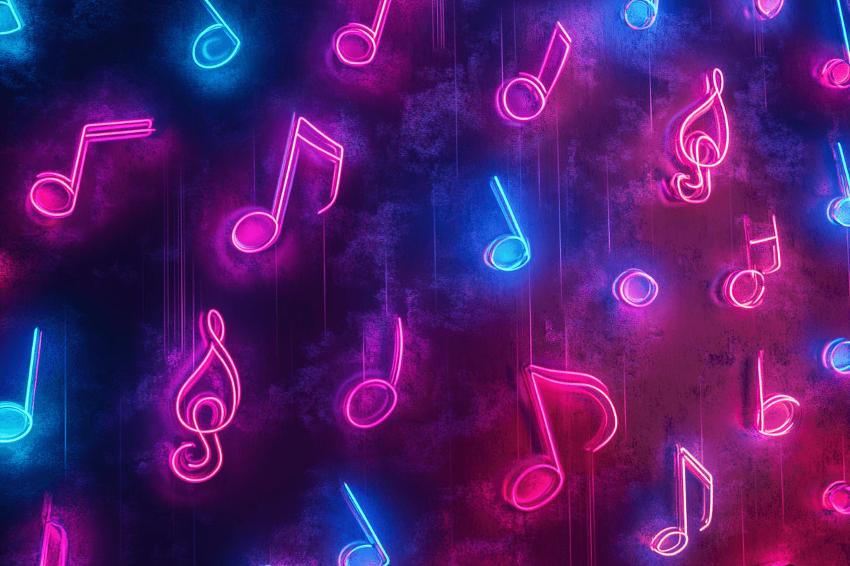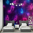 Papier Peint Mural Musical | Notes Néon sur Galaxie Pourpre
